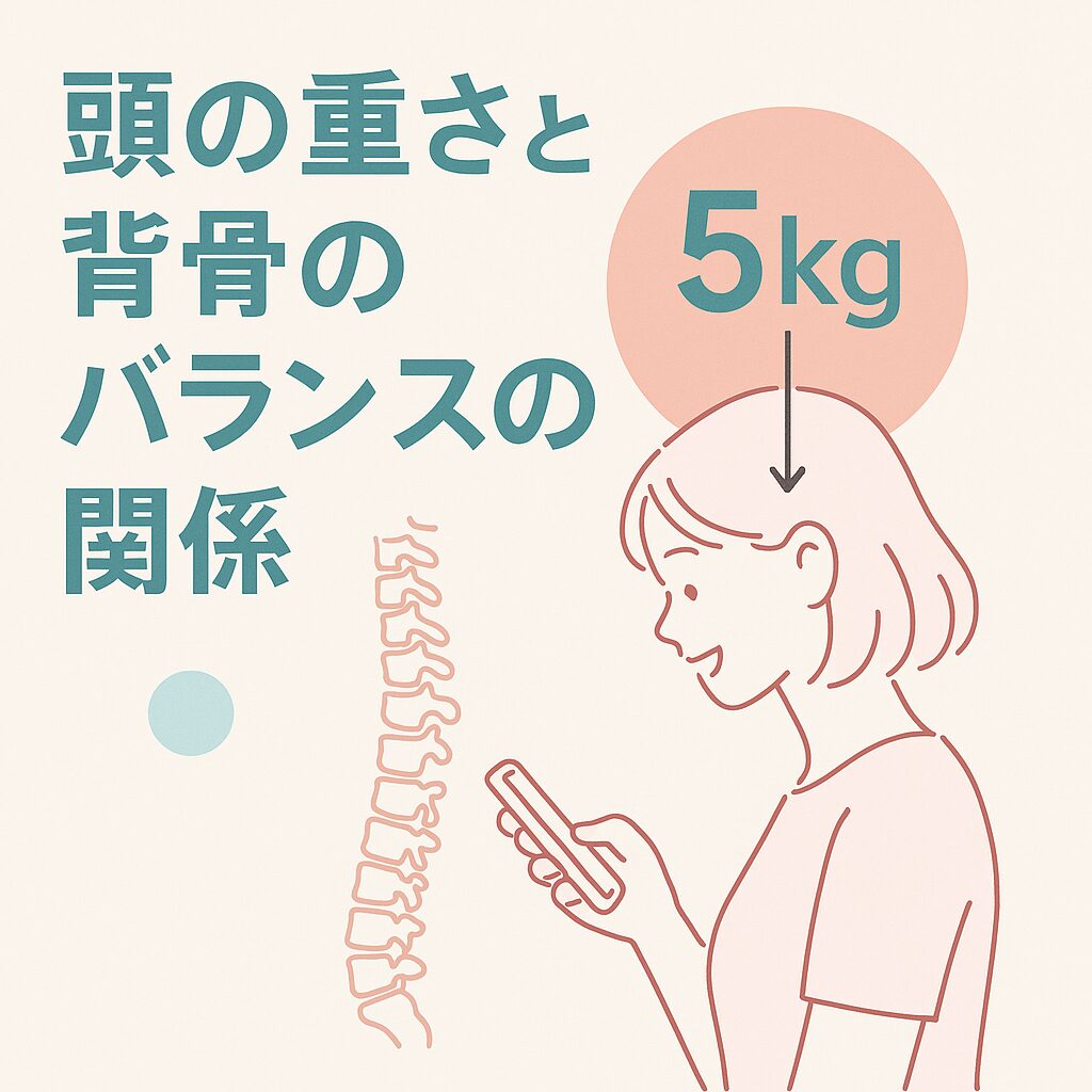 この姿勢になると、頭の重さ(約5kg〜6kg)がそのまま背骨と腰にのしかかります。